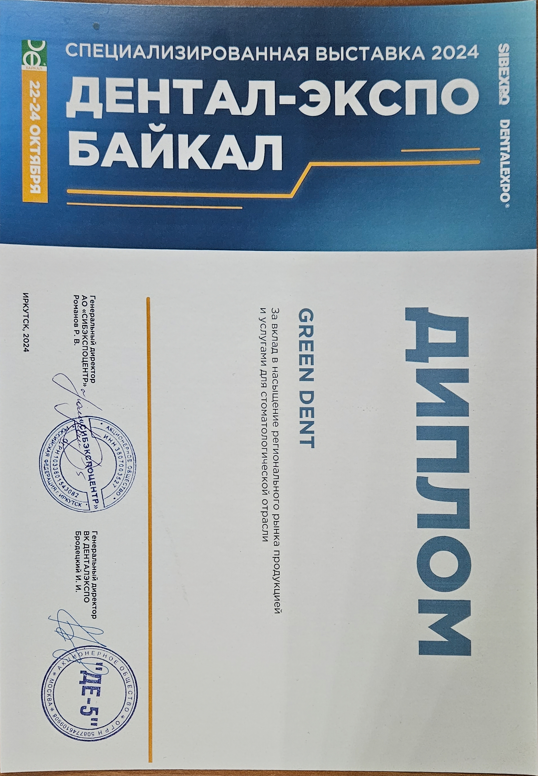 Диплом Дентал-Экспо Байкал