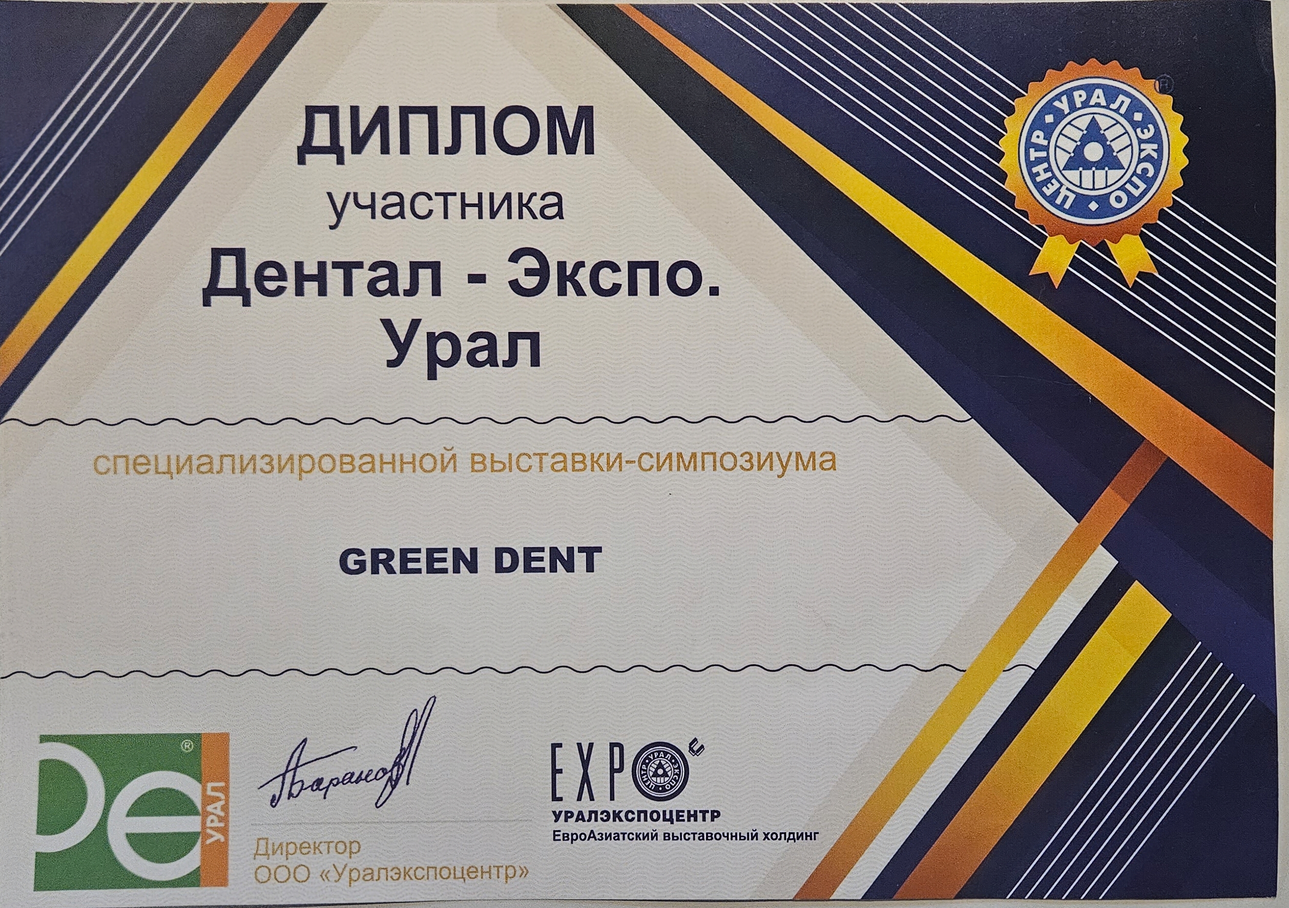 Диплом участника Дентал-Экспо Урал 2024